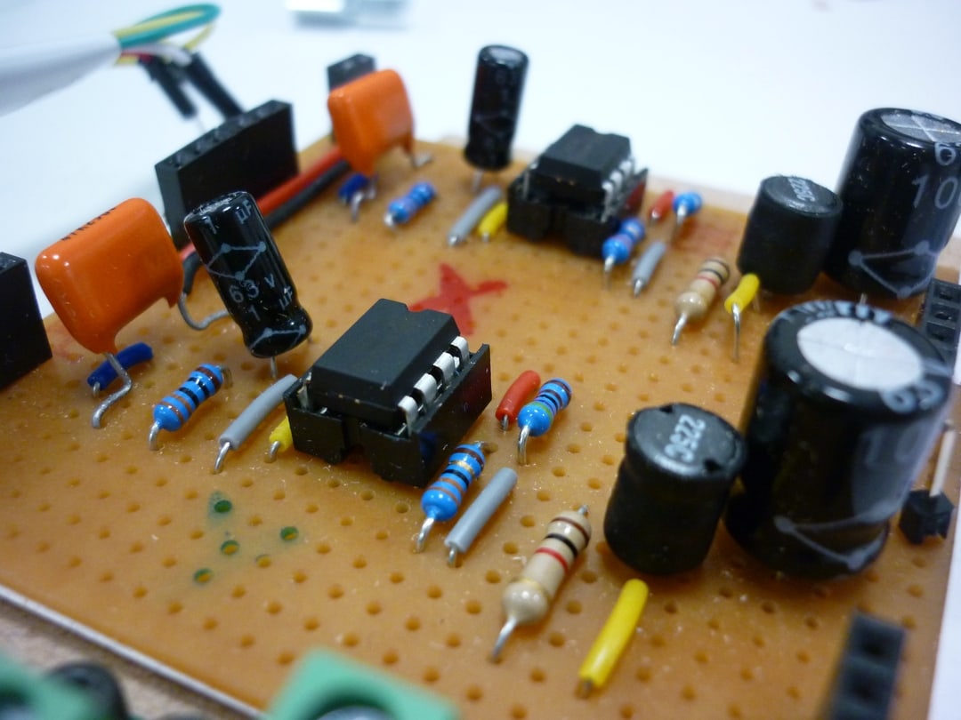 The gantry driver consisted of a voltage-controlled oscillator circuit (VCO) based on a 555 timer chip, a low-pass filter to convert the Arduino's variable-duty-cycle PWM signal to a variable DC voltage, and a delay circuit to facilitate pulse counting via the Arduino's interrupt pins. The entire circuit was duplicated, one for each axis of the gantry.